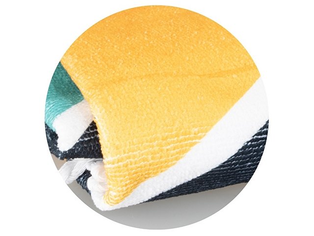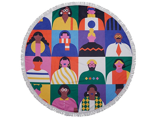 Необычный и трендовый вариант классического пляжного аксессуара. Круглая форма полотенца помогает быстро и удобно расстилать его на земле или шезлонге. Плотный полиэстер сохнет быстрее обычных тканей, поэтому полотенцу не требуется дополнительная упаковка после использования - достаточно ненадолго развесить его для просушки. Полноцветная печать на полотенце производится с помощью сублимации. Бахрома по краю может быть изготовлена в двух цветах (белый и чёрный) на выбор клиента.
