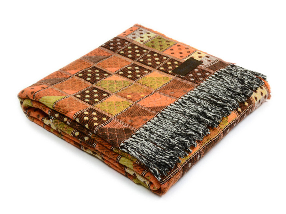 • Плед в стиле «пэчворк» украшен бахромой, оригинальный дизайн органично впишется в интерьер и станет стильным украшением вашего дома. Постелите плед на диван или на кровать, возьмите с собой на дачу или используйте плед-покрывало в кресле-качалке.