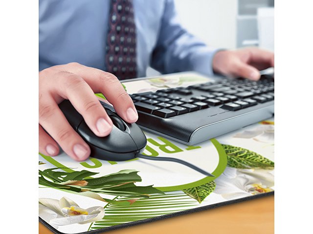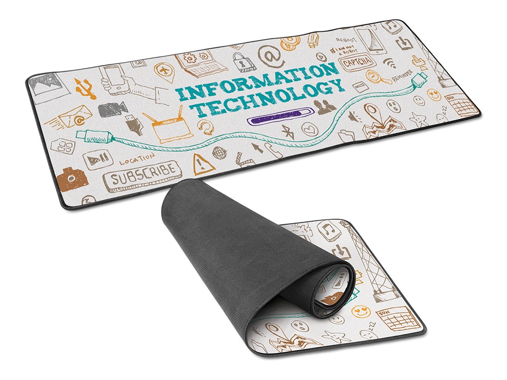 Большой коврик для мышки и клавиатуры, который идеально размещается на столе. Практичный способ брендировать рабочее место и уберечь его от микроцарапин. Гладкое верхне покрытие из микроволокна обеспечивает плавное движение мышки. Резиновая основа и толщина 3 мм не даёт коврику скользить по поверхности стола, дополнительно защищая его от царапин. Изображение наносится на тканевую поверхность, принт размещается ""в край"".