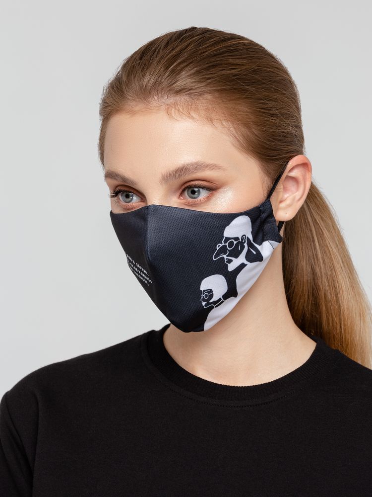 Дизайн принта: Яков Коган.Многоразовая маска из дышащей ложной сетки с ярким принтом с гигиенической хлопковой подкладкой и заушниками-резинками.