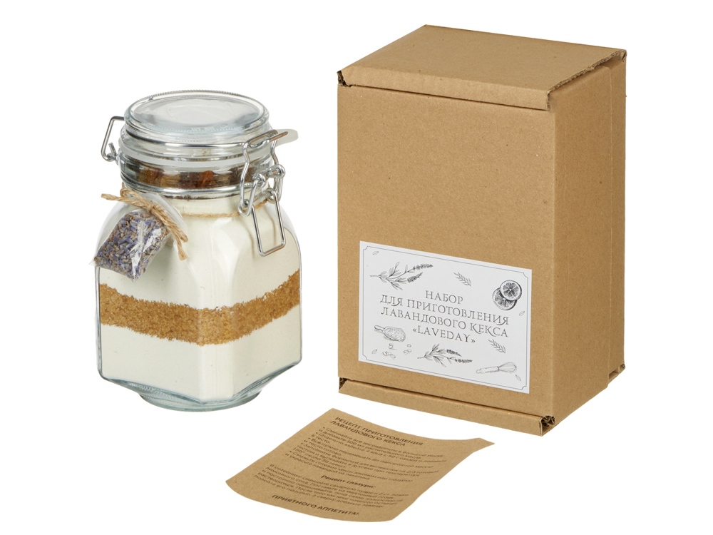 банка 760 мл, смесь для приготовления лавандового кекса, пакетик с лавандой, рецепт, упаковочный материал