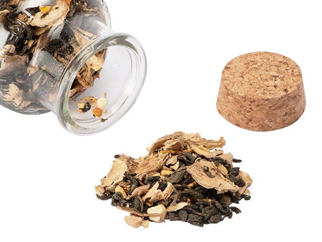 чай зелёный байховый крупнолистовой, кусочки имбиря, сок имбиря, апельсиновая цедра сушёная, ароматизатор натуральный "Апельсин"
